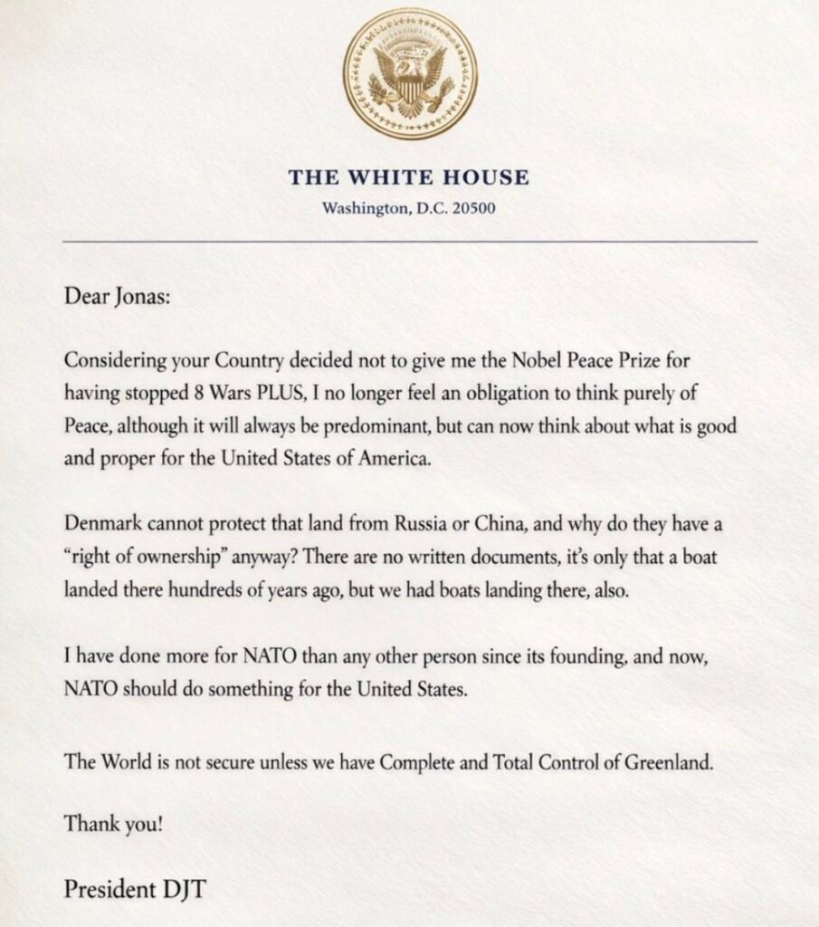 A letter attributed to former U.S. President Donald Trump and addressed to Norway’s Prime Minister has circulated widely online, drawing attention for its references to Greenland, NATO, and global security. The document has been shared across social media platforms and discussion forums, prompting questions about its content and implications.